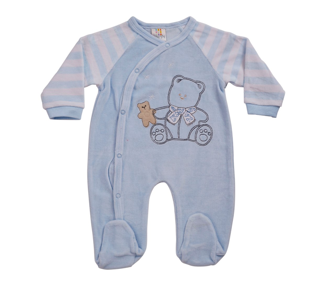 אוברול קטיפה הדפס דב+פפיון תכלת בייבי