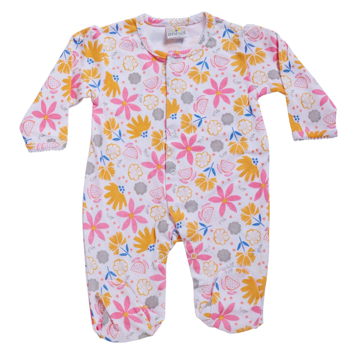 אוברול טריקו ארוך פרחים צבעוניים לבן - ורוד